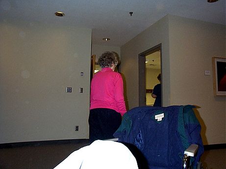 12:50 pm. Patient goes back into the blood-taking room...comes back with bandages on both arms.