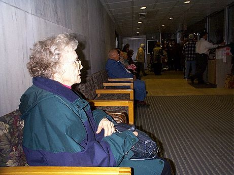 4:55 pm. After the long return journey to the Mayo Building (and finding the MRI desk closed for the day), we wait for the 5:00 pm shuttle back to the Days Inn (where Allen will now take Marilyn's place in Mom's room).
