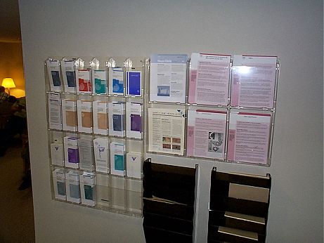 9:00 am. While waiting the assistant inspects a typical wall display of well-organized informative pamphlets explaining the many different examination procedures and preparations.