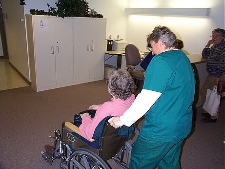 11:10 am. With the hope of getting an MRI exam beginning to fade, we take the long maze of tunnels over to the Enema Prep Facility where the patient is taken away by one of the jolly enema ladies.