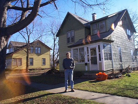 Mom takes picture of her 47-year old assistant in front of his childhood home in Boone, Iowa.